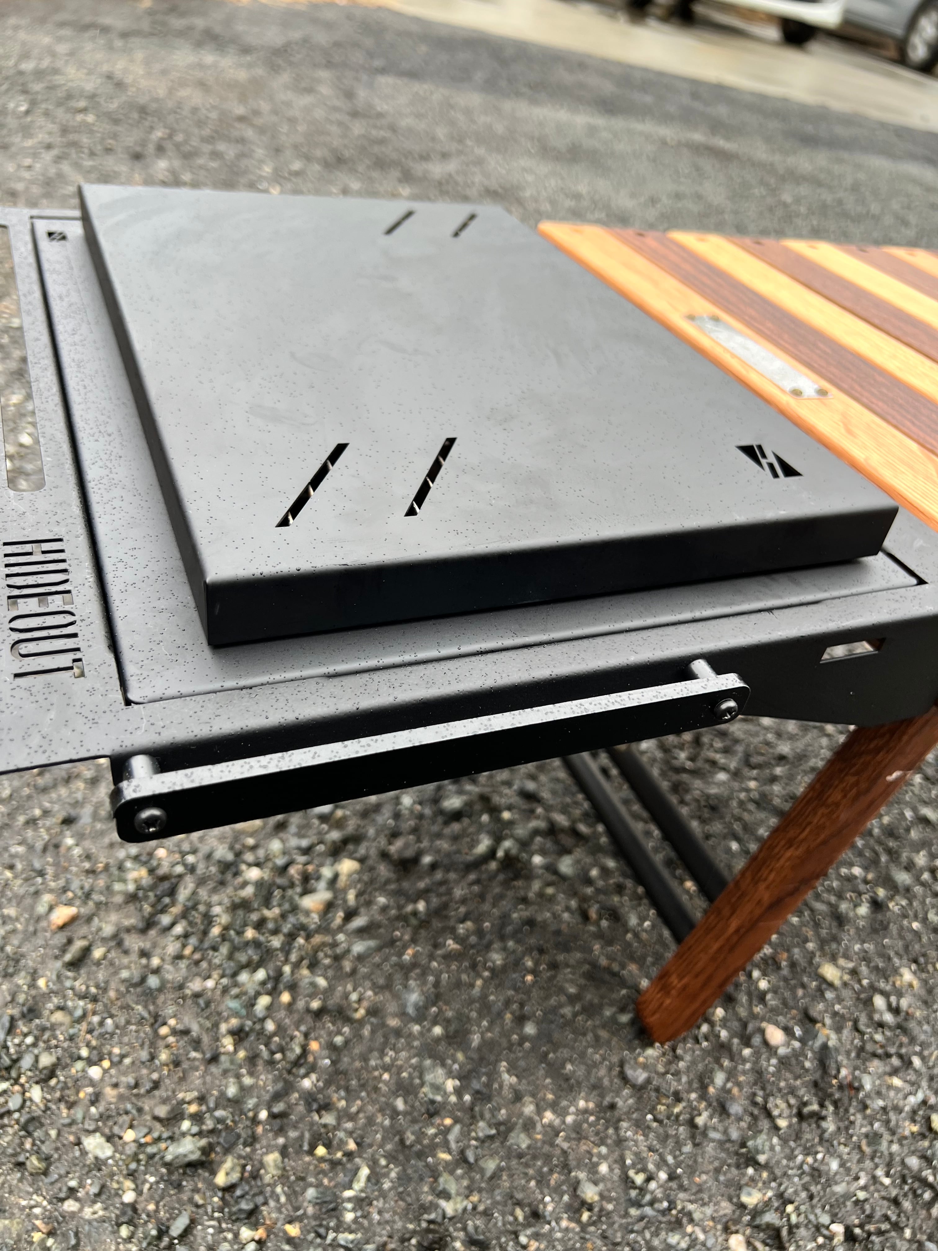 グリルを片付けるのが面倒なので蓋を制作、蓋により使用前、使用後にグリルを置いたままテーブルとして使用出来ます